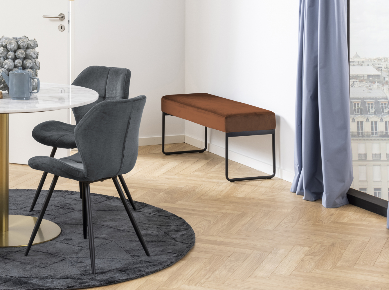 Lavice Xenia je moderní sedací nábytek, který najde uplatnění v každé místnosti vaší domácnosti. Vzdušná a stabilní podnož je doplněna o měkký sedák očalouněný příjemnou sametovou látkou.